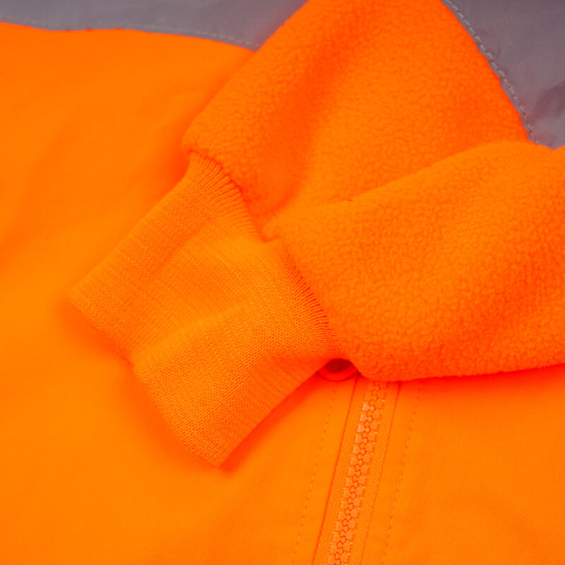 High-Visibility Hood: A fixed, adjustable hood (with a stiff visor and drawcord) keeps rain and wind off your face while maintaining visibility. The hood is lined with fleece for warmth and has a hi-vis trim to ensure it doesn’t block the jacket’s reflective tape.